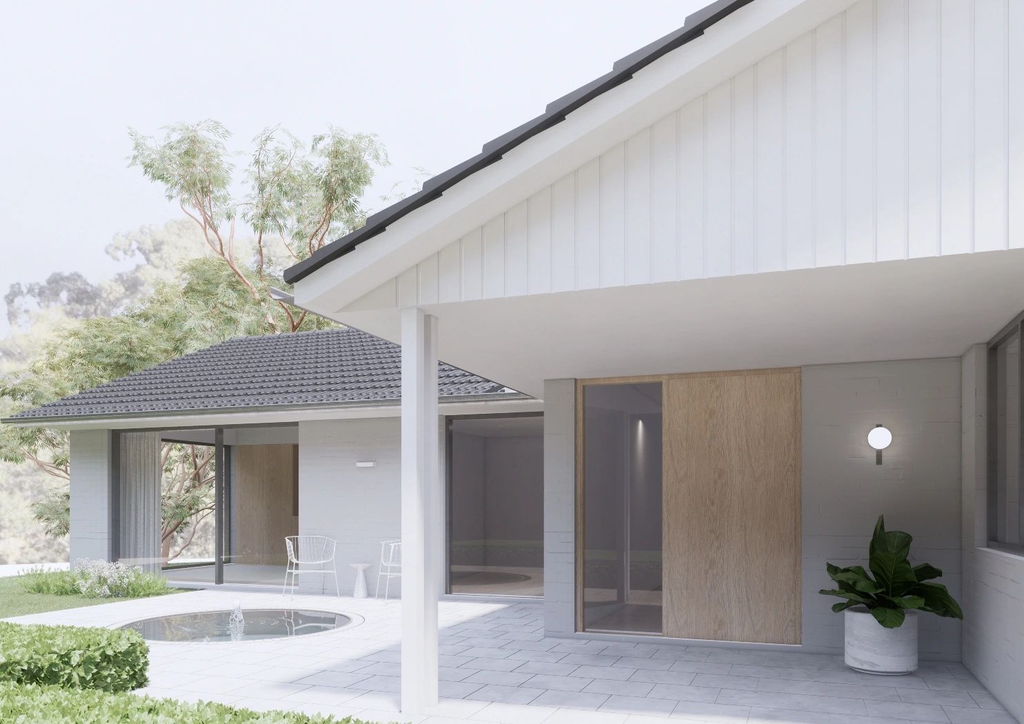 Located in the leafy northern suburb of Kenthurst, Annie is a large single-storey home on a secluded plot surrounded by bush. The existing house required significant improvement, particularly the internal layout, which did not capitalise on solar or outlook. The redesign created new openings to maximise views and light, reworked internal walls for a better layout, and connected the home to nature. Highlights include a private master wing with a bathtub overlooking the views, a large glass portal window, and open-plan living areas that blend seamlessly with the natural surroundings.