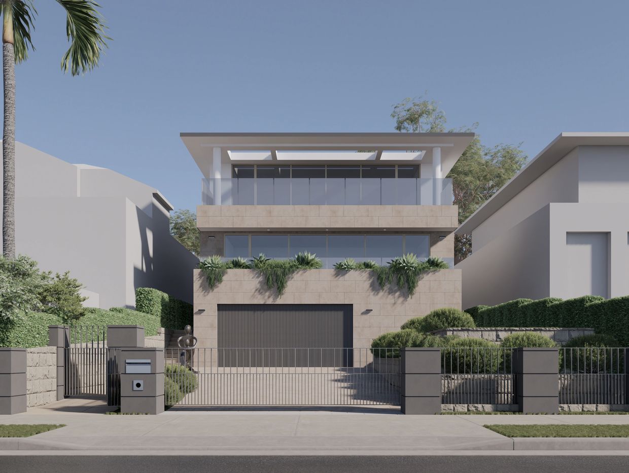 Lavoni is a large home beautiful Balmoral Beach with extensive views of the bay and the headland. The original façade was dated, and did not match the area’s calibre or beachy context. The new design elevates the exterior with stone lower levels reflecting the local sandy colours and sandstone textures, and a lighter upper floor. A new planter edge optimises outlook and privacy, while a redesigned entry enhances security. The result is a cohesive exterior that matches the beautiful interior.
